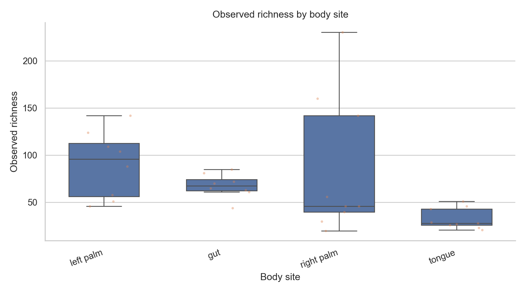 Text(0.5, 1.0, 'Observed richness by body site')