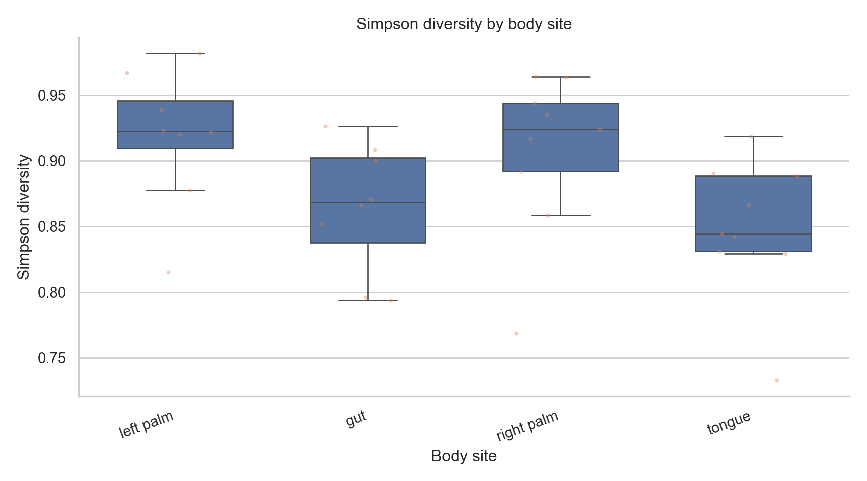 Text(0.5, 1.0, 'Simpson diversity by body site')