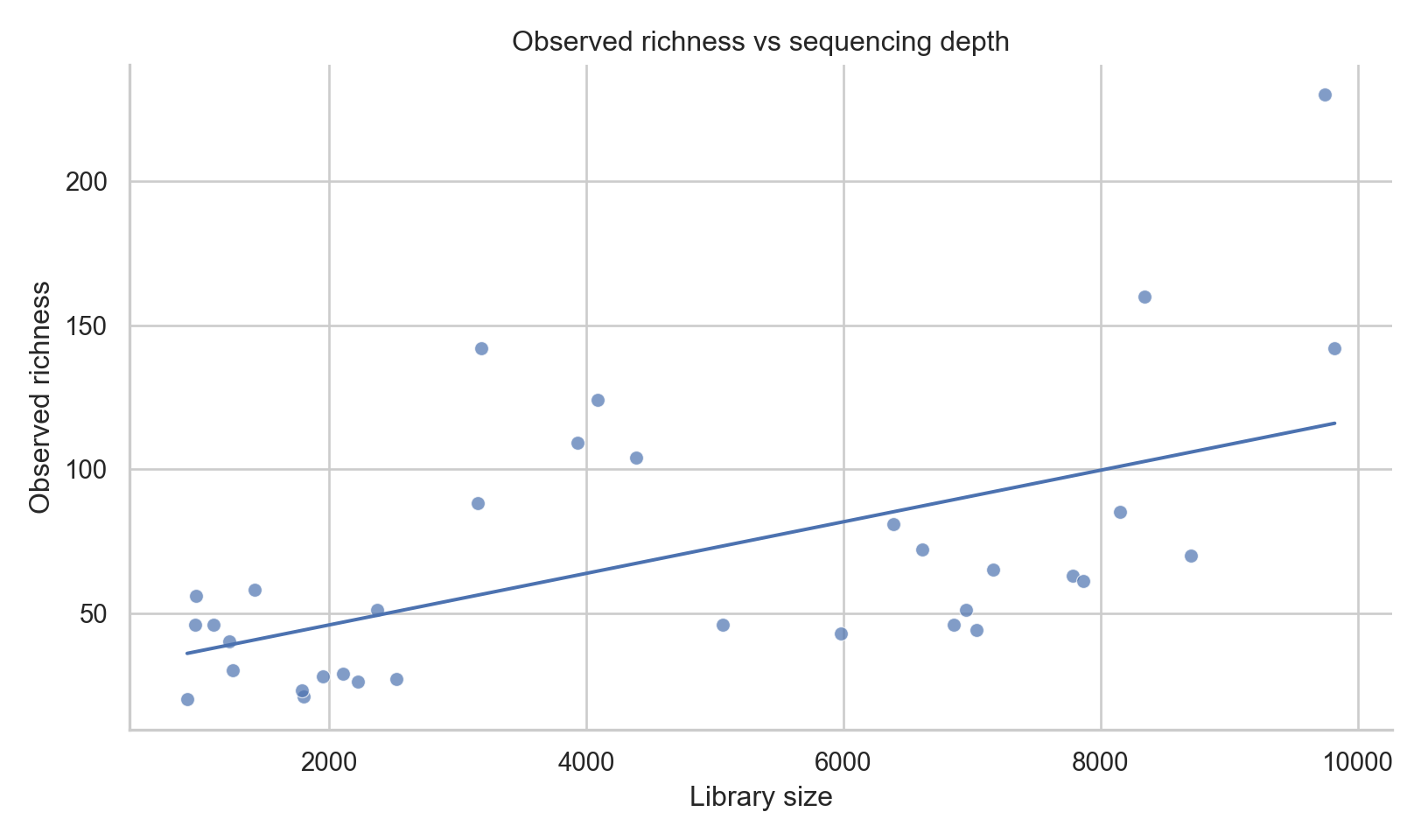 plt.title("Observed richness vs sequencing depth")
